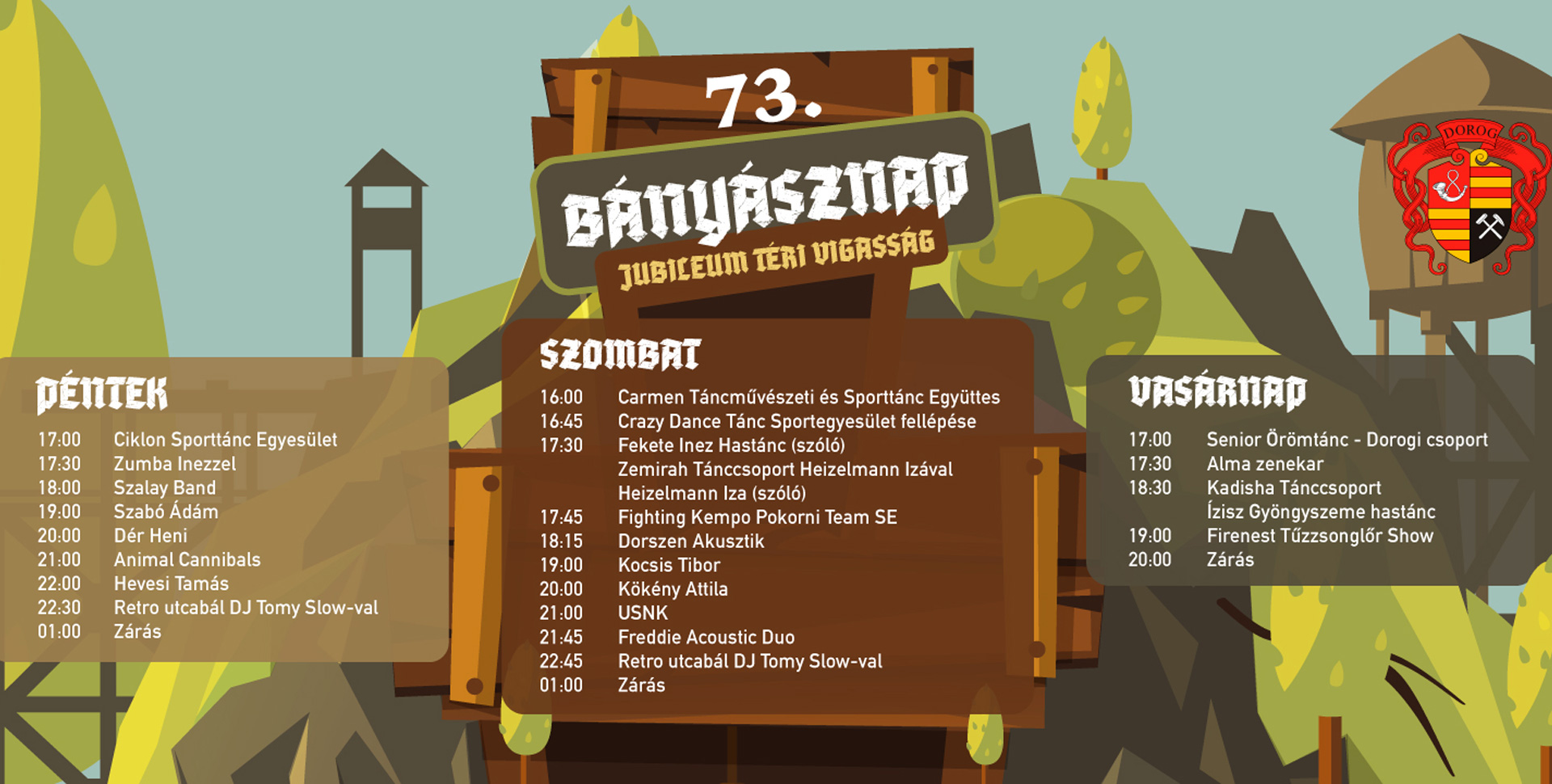 2023. szeptember 1. és 3. között 73. alkalommal rendezik meg a Bányásznapot Dorogon, a Jubileum téren. Koncertekkel, családi és gyermekprogramokkal, valamint nagyszabású retro utcabállal várnak mindenkit.