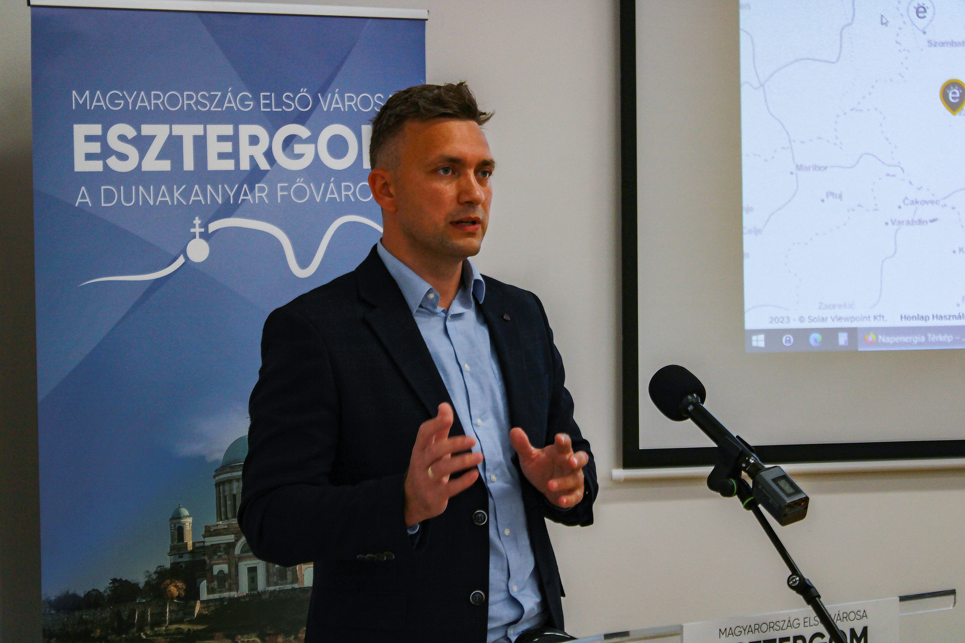 Berek Eleonóra beszédét követően Tran Balázs és Somogyi Csaba az Envirosement Hungary Kft. munkatársai ismertették a bárki számára ingyenesen elérhető szolgáltatást. Kiemelték, hogy Zalaegerszeg, Kazincbarcika, Debrecen és Miskolc után az országban ötödikként hozták létre Esztergom napenergia térképét. A térkép a napenergia potenciáljával kapcsolatosan ad információt egy-egy területről, településrészről és épületről az önkormányzatnak, a lakóknak, a cégeknek és a befektetőknek. Így az érdeklődők ingyenesen felmérhetik annak lehetőségét, hogy érdemes-e napelemes rendszert telepíteniük, illetve a kiválasztott lakóingatlan tetőfelületére kattintva megtekinthetik az épület besugárzási adottságait (hány kW/h áramot termelne egy évben a rendszer), illetve azt, hogy az adott tetőfelületen a telepítendő napelemes rendszerrel hozzávetőlegesen mekkora összeget tud megtakarítani a beruházó.