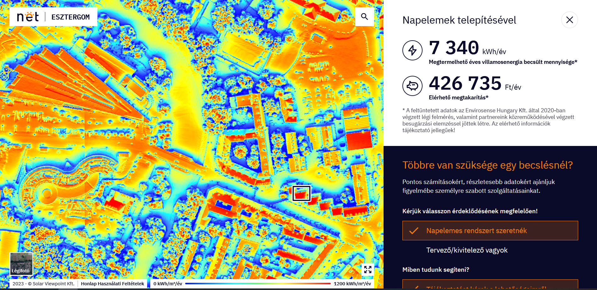 Az Esztergom Megyei Jogú Város Önkormányzata és az Envirosense Hungary Kft. jóvoltából elkészült Esztergom napenergia térképe, amely az egyes ingatlanok esetében megmutatja a napelem hatékonyságát. A szolgáltatás mindenki számára ingyenesen elérhető a napenergiaterkep.hu oldalon.