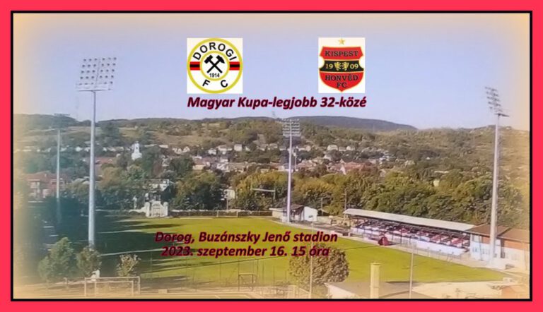 A hétvégén teljes kört rendeznek a Magyar Kupában, ahol már az országos főtábláról folytatódnak a küzdelmek. A mezőny felét a most csatlakozó két felső osztály 30 csapata teszi ki, a másik felét pedig az alsóbb osztályokból, a területi, illetve megyei selejtezőket sikeresen vett gárdák adják. A mieink eddig biztosan véve a korábbi fordulókat, kapott gól nélkül, 9 : 0-ás összesítéssel készülhetnek a következő megmérettetésre. Immár a legjobb 32-közé jutásért igen komoly ellenfelet kaptak a dorogiak a sorsolást követően. Az elmúlt hat évben sorra kerültek össze neves élvonalbeli csapatokkal – Vasas, Debrecen, MTK, Ferencváros, Honvéd  -, amely most tovább bővül, pontosabban a kispesti együttes ellen duplázódik.