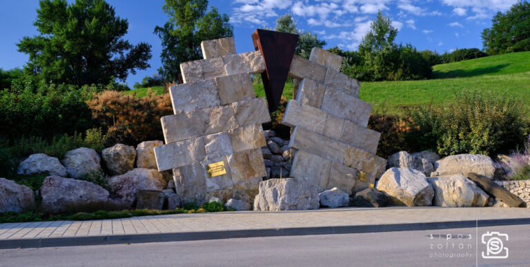 Az alkotás jelképesen mutatja be a kőbányászat alapját, a kőfejtést, a kövek szétválasztását, megmunkálását. A központi emlékmű három részre tagolható, egy óriási ék középen, mely jobbra és balra a kőtömböket széthasítja. A baloldalon, réztáblán a következő felirat áll: „Tisztelet azoknak, akik a köveket új életre keltik!”