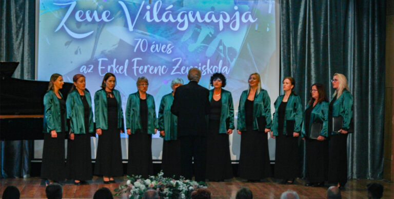 Az átadók után a zene világnapi rendezvényt a 70 éves zeneiskola Halleluja Kórusának csodálatos műsora zárta. Vezényelt Farkas Rose-Marie karnagy, zongorán közreműködött Kálvin Balázs. A Halleluja kamarakórus 2004-ben alakult a dorogi Erkel Ferenc Zeneiskola magánének szakos növendékeiből, melyhez később az iskola tanáraiból is csatlakoztak néhányan. Számos hangversenyt adtak Dorogon és vonzáskörzetében, valamint Budapesten, de több fellépésük volt már külföldön is. Rendszeresen részt vesznek a városi ünnepségeken és a nagy egyházi ünnepeken. Szeptember közepén a Gáthy Zoltán Városi Könyvár 70 éves évfordulójának záró rendezvényén léptek fel nagy sikerrel. Sok éven át rendszeres résztvevői voltak a Piliscsabai Egyházzenei Napoknak és az Énekel az ország című rendezvénynek, melynek keretében Hollerung Gábor karmester vezényletével minden évben egy teljes oratóriumot mutat be a Művészetek Palotájában az ország különböző részeiből érkezett egyesített kórus. 2011-ben koncertkörúton vettek részt Erdélyben, a Kolozsvári Barnabásné által alapított és vezetett Pachelbel kamarazenekarral együtt. 2013-ban bemutatták Kálvin Balázs Cselenyák Imre szövegkönyve alapján írt meseoperáját, A szorgalmas és a rest lányt a Pachelbel kamarazenekar kíséretével, melyet a környék ifjúsága Dorogon, Leányváron és Tokodon láthatott. A művel 2014-ben a nagyváradi, nagyszalontai és dévai gyermekotthonok közönségét is megörvendeztették. Kálvin Balázs az Erkel Ferenc zeneiskolában kezdte el zongora tanulmányait Gerstner Bálintné tanítványaként, akit elhivatott munkájáért Miniszteri Dicséretben, valamint a Dorogiak Dorogért és a Bonis Bona díjban részesítettek. Tanárnője biztatására gyermekkora óta foglalkozik zongorakísérettel, kamarazenével. A Zeneakadémia elvégzése óta a Magyar Állami Operaház zongorakísérője. Kapcsolata a Halleluja kamarakórussal fennállása óta töretlen. 2016-ban Dorog Város Önkormányzatának támogatásával az angliai Southend-on-See-ben az 1956-os forradalom 60 éves évfordulója alkalmából a kamarakórus és a Pachelbel kamarazenekar ünnepi hangversenyt adtak. Az eseményen részt vett Magyarország konzuljaj, és többen az ott élő 56-os menekültek közül. Az együttes gazdag repertoárja a többségben lévő egyházzenei művektől az operán, operetten keresztül a musicalig terjed. Mottójuk, mely munkásságukat jellemzi: „Örömöt szerezni örömmel, tiszta szívből.”