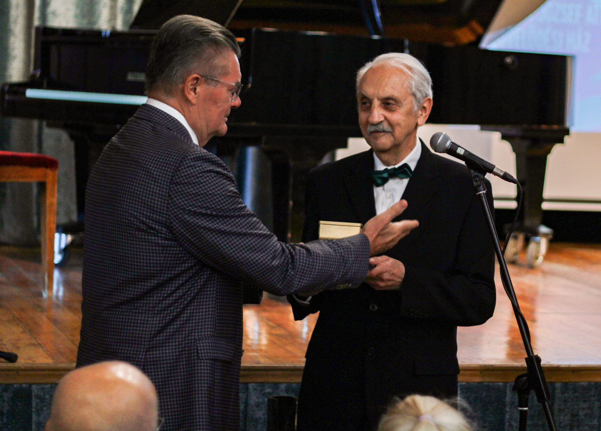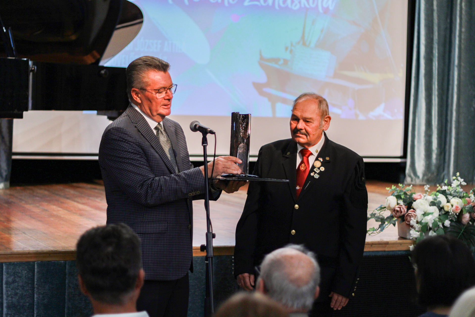 Az ünnepség további részében átadásra került Dorog Város művészeti díja, a Rauscher György-díj, amelyet az idén Bohner Antal a Dorogi Német Nemzetiségi Kulturális Egyesület Bányász Zenekarának korábbi elnöke vehetett át dr. Tittmann Jánostól. Bohner Antal egy nagy dorogi zenész család harmadik generációjának képviselője. Nagyapjának zenekara volt, édesapja harmonikázott. Ifj. Bohner Antal, a kiváló klarinétos 1964-ben került a Dorogi Bányász Zenekarba. Ezekben az időkben jutott a még szimfonikus zenekar méretű együttes sikereinek egyik csúcsára. A Siklósi Várfesztiválon a 60-as és 70-es években sorra aratták sikereiket véglegesen elhódítva a vándorserleget. Ugyancsak elismerésben részesültek a Szimfonikus Zenekarok I. Országos Fesztiválján Budapesten 1967-ben, és számtalan városban, bányásztelepülésen, balatoni üdülőhelyen szerzett a zenekar híveket a szimfonikus zenének. Még Lénárt Elek karmestersége idején a fiatal Bohner Antal a nemzetközi sikereket is megélhette: a csehszlovákiai Steti, Ostrava, a németországi Taiflingen, Kissleg újabb fesztiválsikereket hoztak – immár nemzetközi szinten. Eljöttek a nehezebb idők a 80-as évektől, de Bohner Antal hűséges maradt a zenekarhoz. Rövidebb ideig Bulhart Vilmos, majd az újabb stabilitást hozó Zagyi István karmester karmestersége idején is kitartott, sőt kiemelkedő szerepet játszott abban, hogy az utóbbi évtizedekben új szervezeti formában alakult ki a zenekar új arculata. Uresch Miklóst, majd Pétervári Lászlót követve az elnöki székben az ő vezetésével jött létre az a folyamatosan megújuló profil, amely tiszteli a múltat, fölvállalja a gazdag bányászhagyományokat. Bohner Antal a Bányász Zenekar vezetőjeként Dorog egyik legnagyszerűbb kulturális hagyományának folytatója, egyben megújítója. A Dorogi Német Nemzetiségi Kulturális Egyesület Bányász Zenekarának elnökeként részt vett számos bányászati témájú, illetve városi, kistérségi ünnepen. 2019-ben megszervezte az akkor 130 éves bányászzenekar ünnepi koncertjét. Május elsejei felvonulások, Európa napi koncertek, bányásznapi ünnepségek aktív szervezője, részese. Alapítója volt a táti zenekarnak, játszik a Sváb Partyban, de a mai napig muzsikál a bányászzenekar oszlopos tagjaként. A muzsikálást immár nem elnökként, hanem a zenekar tagjaként folytatja.