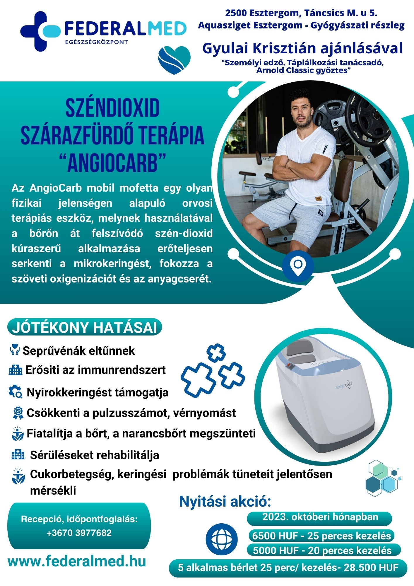 Az Aquasziget Esztergom gyógyászati részlegén szén-dioxid szárazfürdő terápiát indítanak Gyulai Krisztián, személyi edző, táplálkozási tanácsadó és Arnold Calassic győztes ajánlásával.