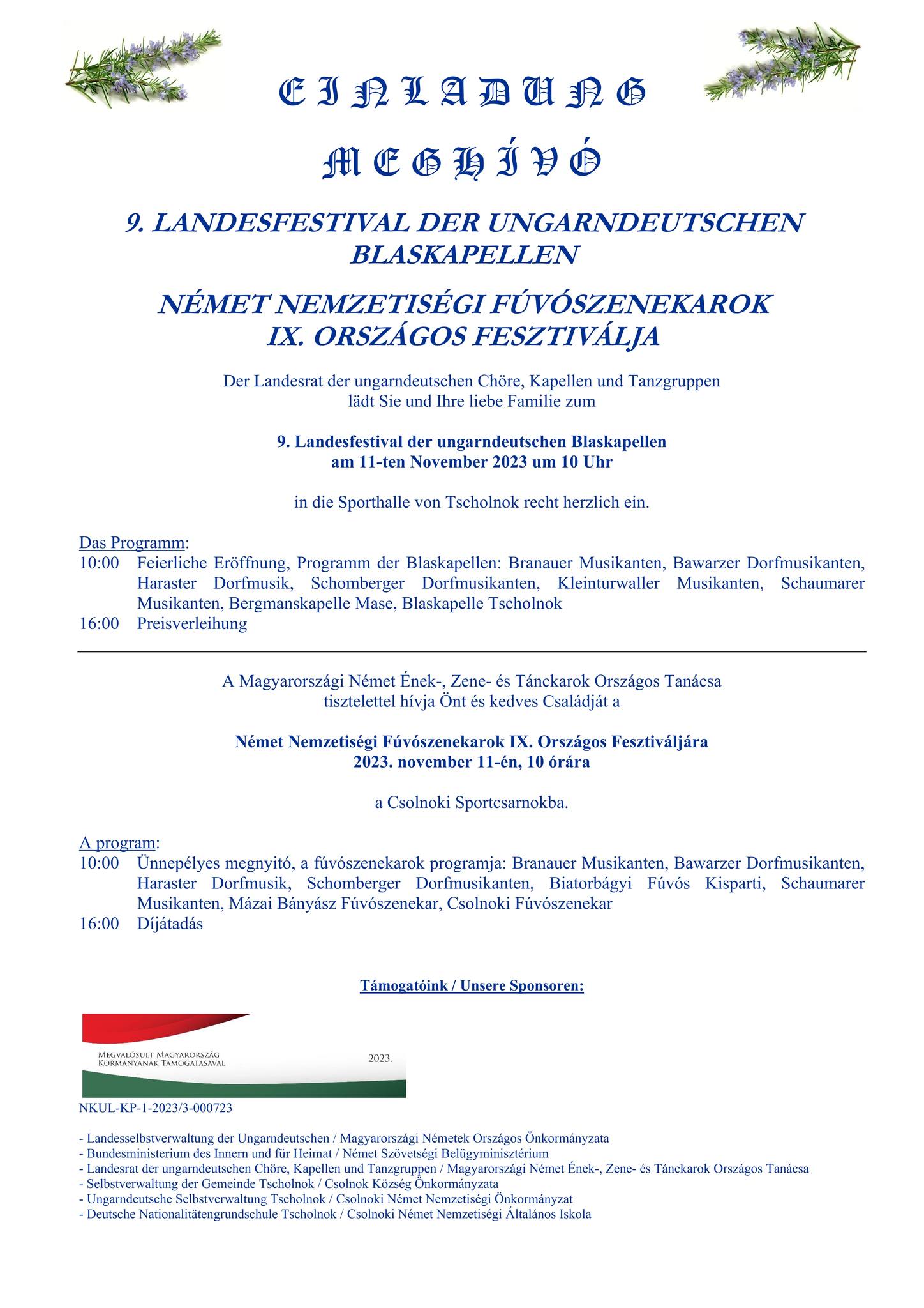 Az ingyenes rendezvényre mindenkit szeretettel várnak, amely a Német Szövetségi Belügyminisztérium (BMI), a Magyarországi Németek Országos Önkormányzata (LdU) és Magyarország Kormánya támogatásával valósul meg.