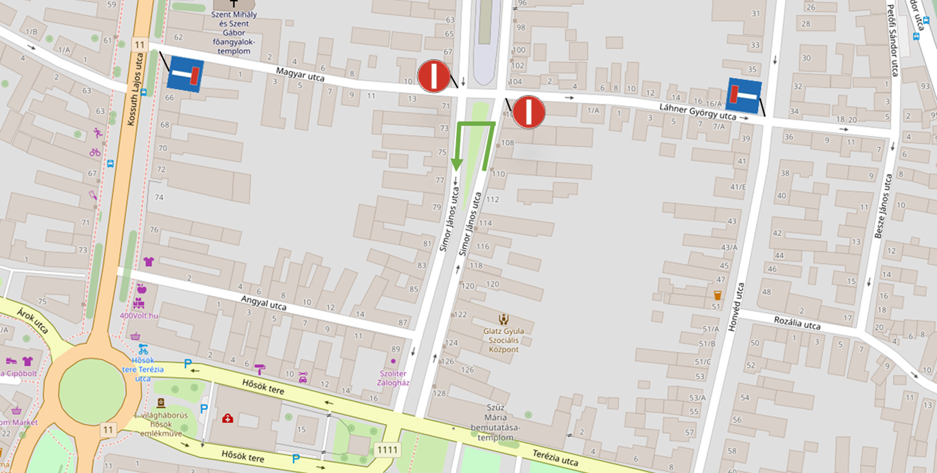 A visszafordító sáv kialakításához szükséges munkálatok elvégzése miatt november 12-én, vasárnap 18 órától a Simor János utca 77. számú háztól a Láhner György utca irányában mind a páros, mind a páratlan oldalon ideiglenesen tilos lesz gépjárművel megállni.