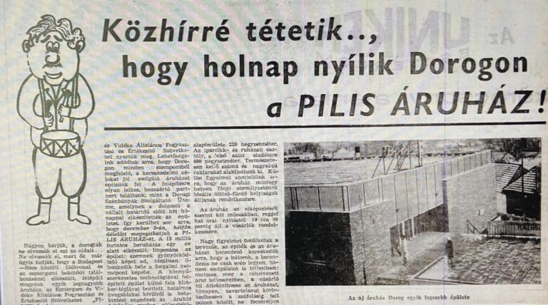 Fél évszázada annak, hogy térségünk addigi legnagyobb áruháza készült el és nyitotta meg kapuit a vásárlók előtt. A hivatalos megnyitás napja 1973. december 3-án, hétfőn történt. Dorog egyik legfrekventáltabb részén két szinten egy minden igényt kielégítő komplett árhuzáz létesült, amely mind megyei, úgy országos szinten is komoly elismerésnek örvendhetett.