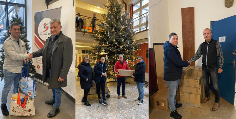 Az élelmiszereket, édességeket tartalmazó dobozokat a Dorogi Sportcsarnokban gyűjtötték, majd december közepén átadták a három helyi általános iskolája vezetőjének.