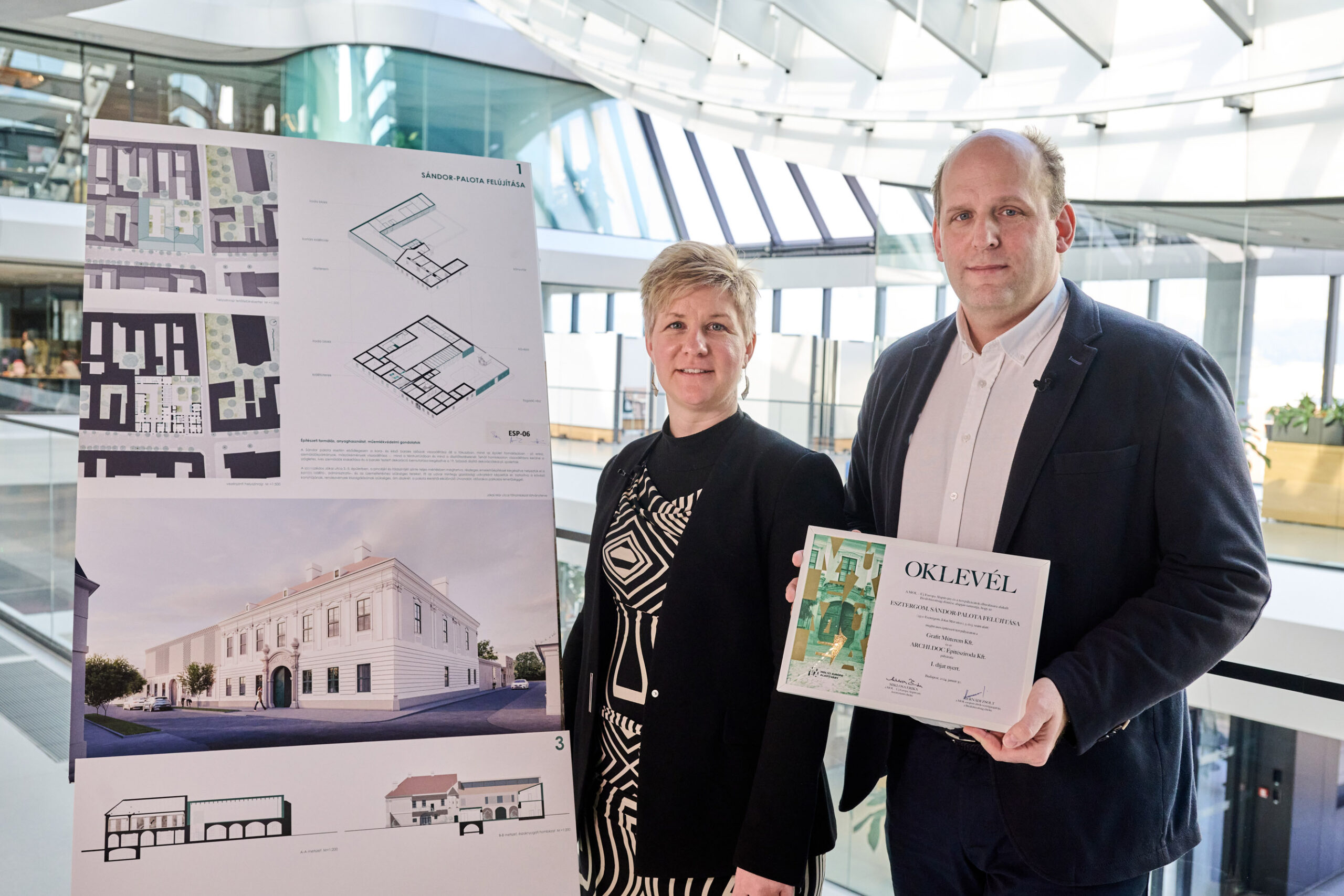 A MOL – Új Európa Alapítvány a tulajdonában álló, esztergomi Sándor-palota felújítására meghirdetett, meghívásos építészeti tervpályázatában a műemléki örökséget tiszteletben tartó, a tervezési programban meghatározott, közösségi funkciót is ellátó épületre várt építészeti javaslatokat. A pályaművek értékelésében a kilenc tagból álló bírálóbizottság három helyezettet jelölt meg.