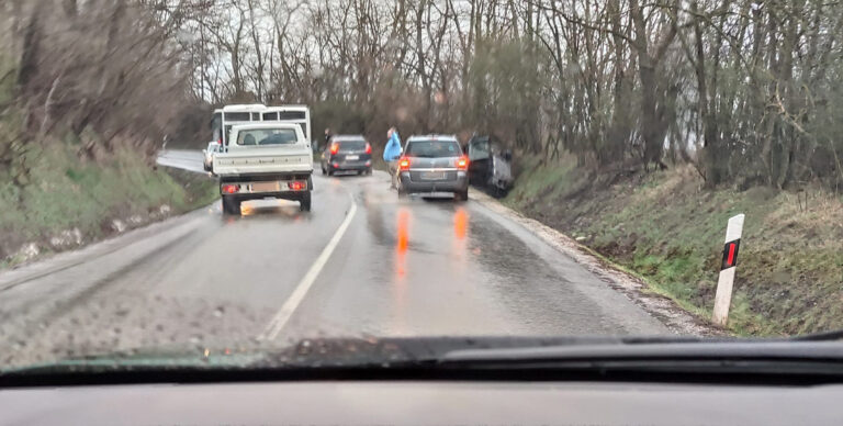 Február 23-án, pénteken reggel árokba hajtott egy autó a 1119-es úton Nagysápnál.