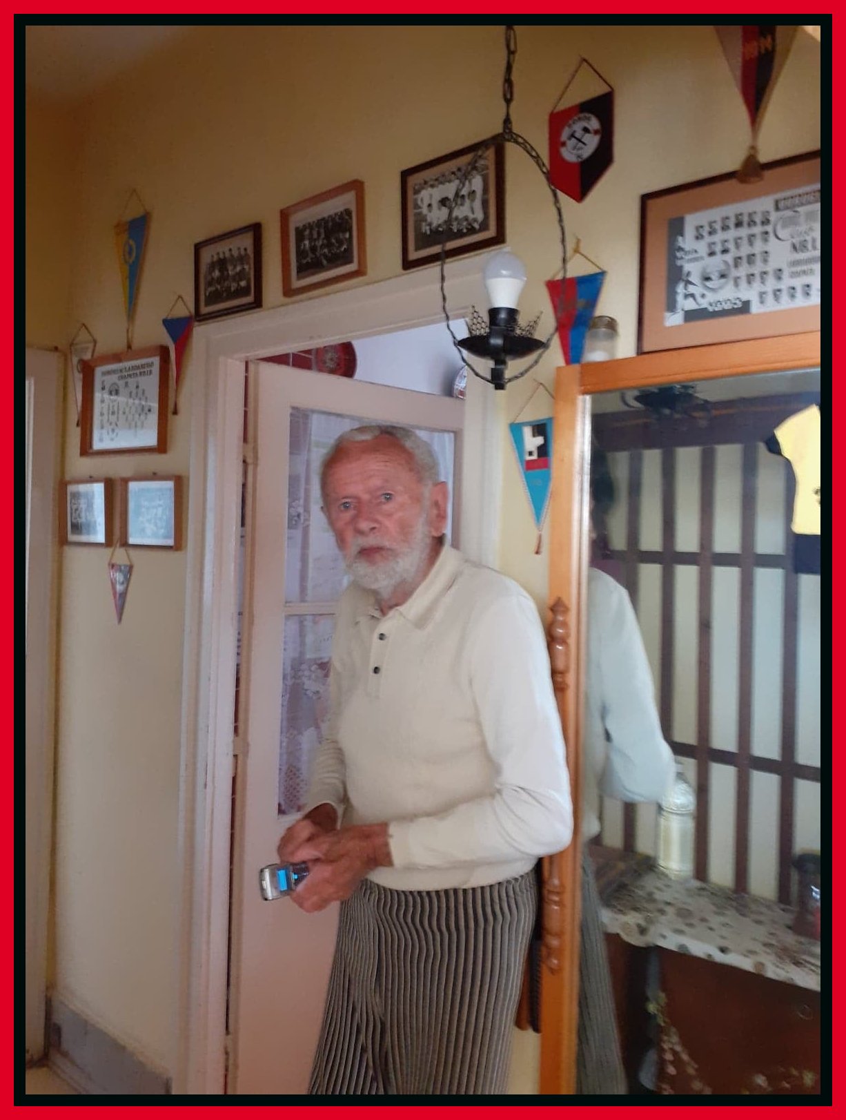 A lakásában készült itt látható képet 4 éve küldte kedves gesztusként a Dorogi FC közösségi csoportjának, amelyen már a 87. életévében járt. Méltán vált a dorogi labdarúgás egyik ikonjává.