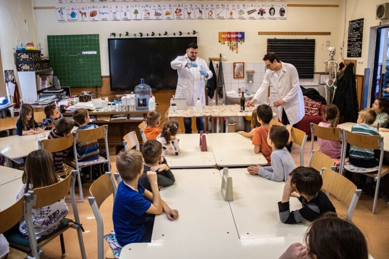 Február 27-én látványos kémiai kísérletek résztvevői és szemtanúi lehettek a dorogi Zrínyi iskola 1.b osztályának kisdiákjai. A kémiaórát ezúttal Pilling Dávid, a Richter Gedeon Nyrt. dorogi gyáregységének üzemvezető-helyettese tartotta.