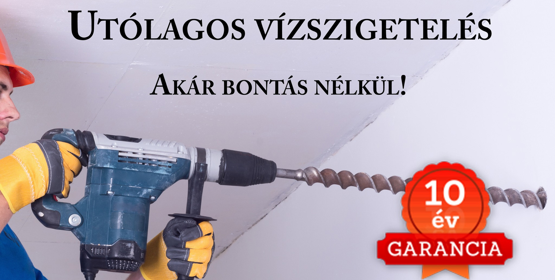 - Utólagos vízszigetelés évszaktól függetlenül, akár bontás nélküli beavatkozással (injektálással), 10 év garanciával,