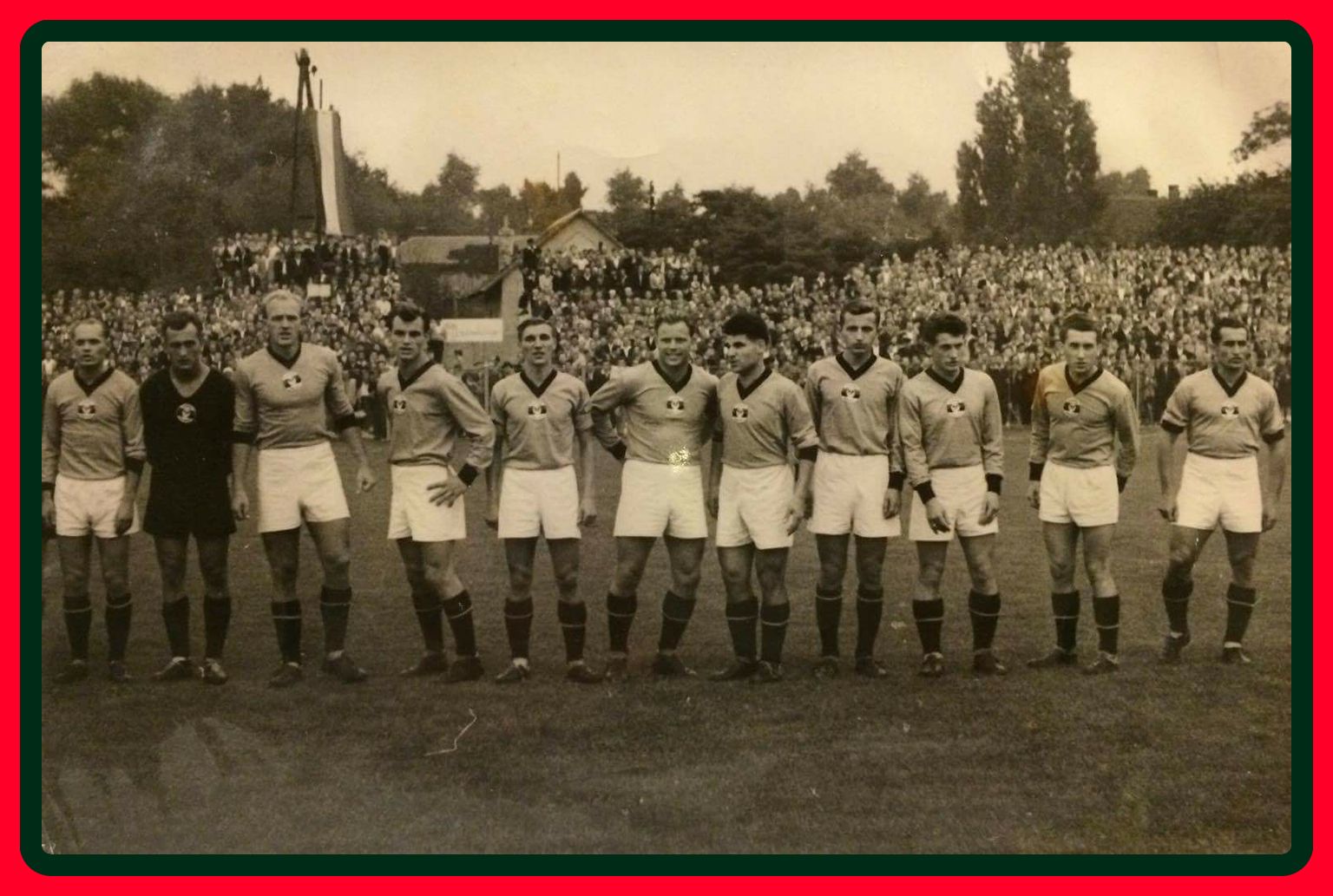 A Dorogi Bányász csapatában a Honvéd elleni bajnokin 1957-ben. Monostori balról a negyedik.