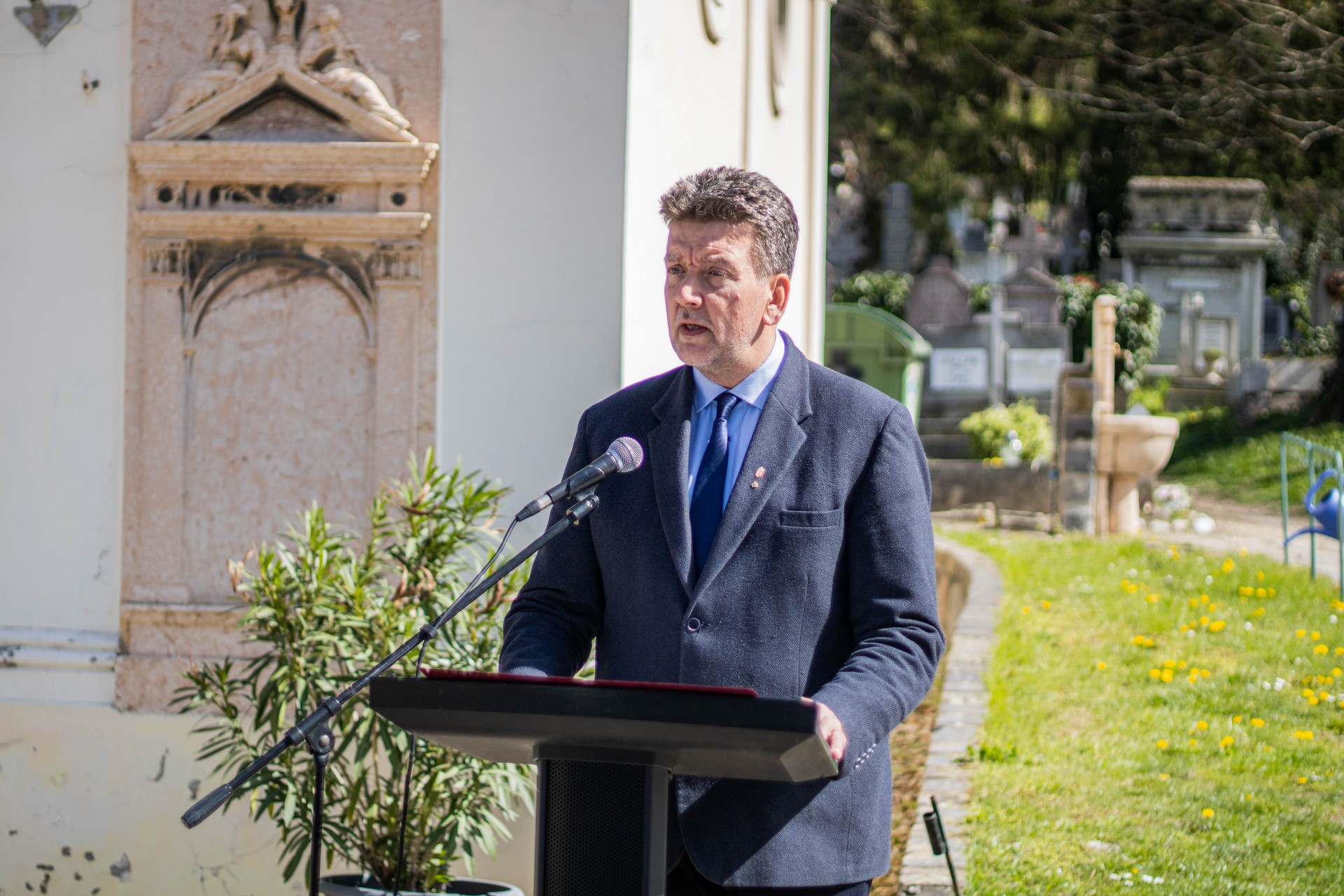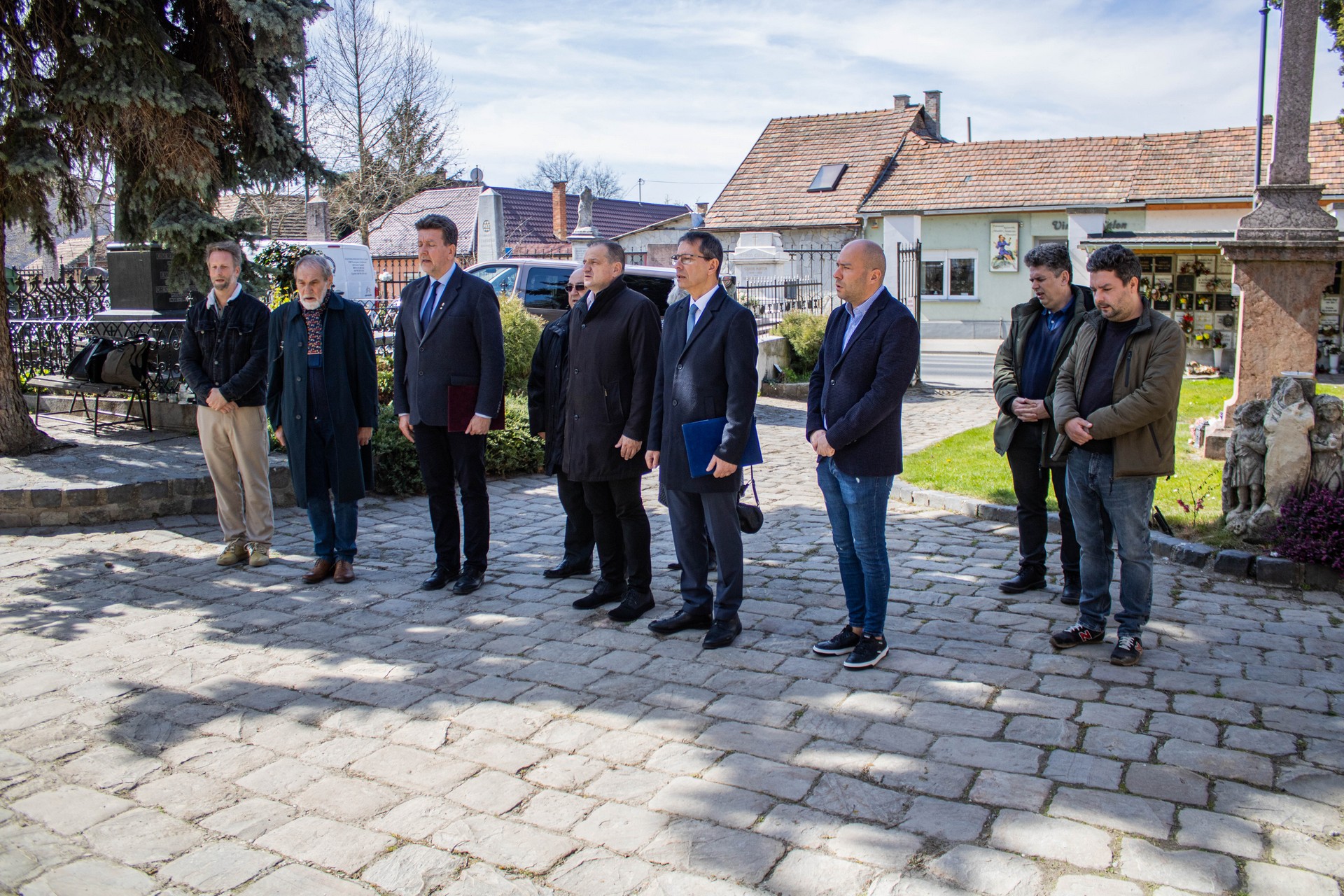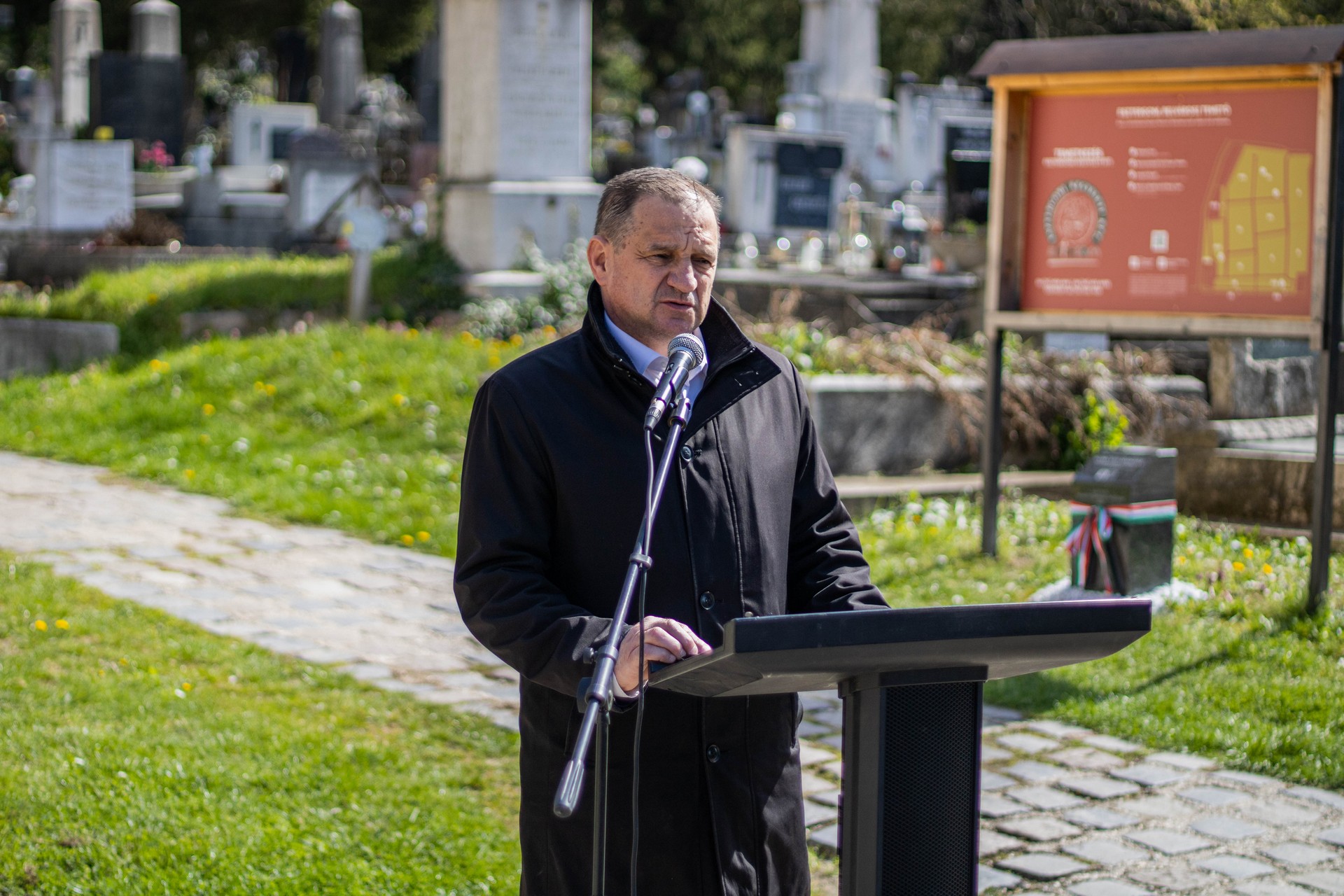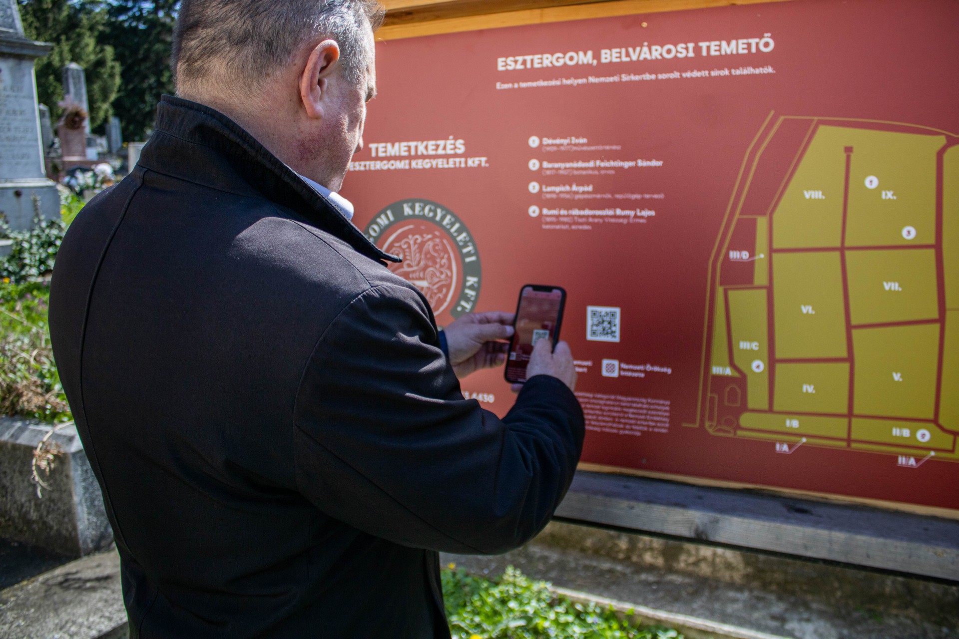 Dr. Alberti Péter, Esztergom Megyei Jogú Város alpolgármestere elmondta, hogy a Nemzeti Sírkert virtuális jellegű, nem konkrét helyhez tartozó, hanem Magyarország területét lefedő sírkert, amelyben a magyar történelem és kultúra jelentős alakjainak sírjai tartoznak. A mai naptól pedig okos parcellakövek jelölik a Nemzeti Sírkertbe sorolt sírhelyeket itt Esztergomban is. „Itt a belvárosi temetőben található, a Nemzeti Sírkertbe tartozó sírok közül Dévényi Iván művészettörténész, művészeti író, műgyűjtő, Feichtinger Sándor botanikus orvos, Lampich Árpád gépészmérnök, repülőgéptervező és Rumy Lajos tiszti arany vitézségi érmes katonatiszt, ezredes végső nyughelye.” – jegyezte meg az alpolgármester.