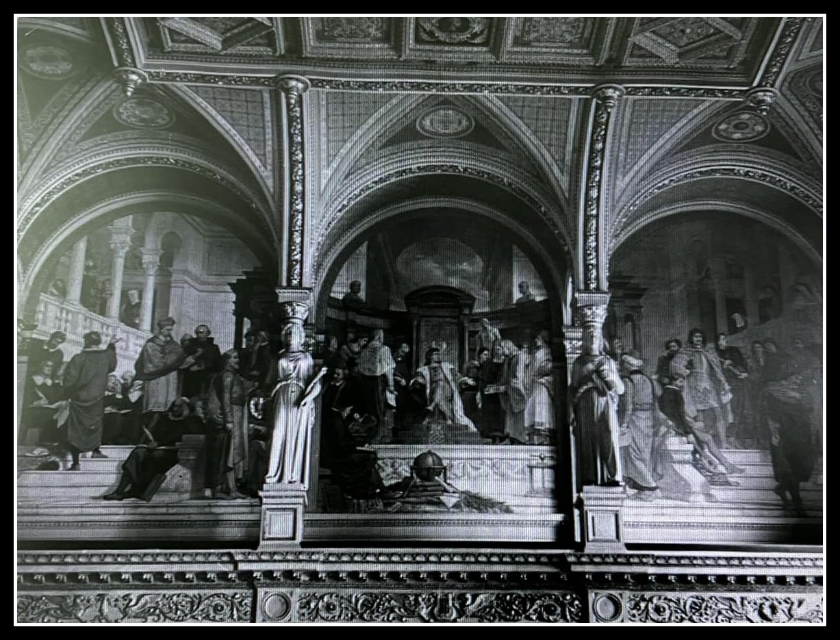 Mátyás tudósai és művészei körében – Lotz Károly falfestménye (forrás: Magyar Tudományos Akadémia)