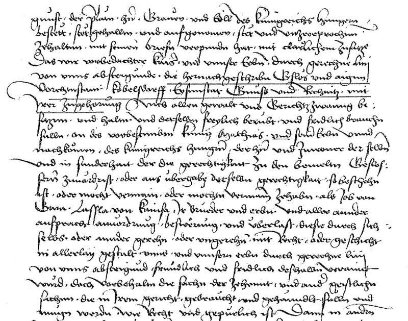 Részlet a III. Frigyessel kötött szerződésből (forrás: Bariska István: II. Pius és az 1463. évi békeszerződés)