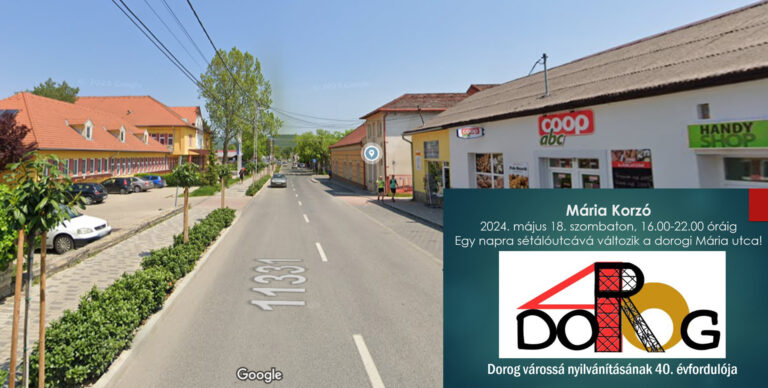 FIGYELEM! A Mária Korzó elnevezésű rendezvény ideje alatt (május 18-án, szombaton 16 és 22 óra között) a Mária utcát – a Bécsi úttól a Rákóczi utca kereszteződéséig – elzárják az autós forgalom elől. Gépjárművel kerülni a környező utcákban lehet! Továbbá a Mária utcai parkolókban, illetve a szakrendelő parkolójának területén kirakodóvásár, nyitott üzletek és utcabútorok lesznek, így tisztelettel kérik a lakosokat, hogy autóikat a környező településrész parkolóiban (sportcsarnok, Vasút sor, agora stb.) helyezzék el!