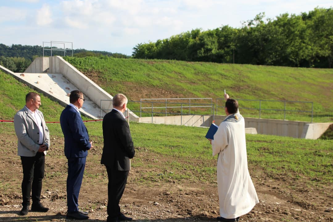 A beszédek után Vitális Gábor atya megáldotta a záportározót, majd dr. Kancz Csaba, Popovics György, Erős Gábor országgyűlési képviselő és Tóth Zoltán átvágták a nemzeti színű szalagot. Az ünnepségen közreműködött a helyi Harmónia Kamarakórus.