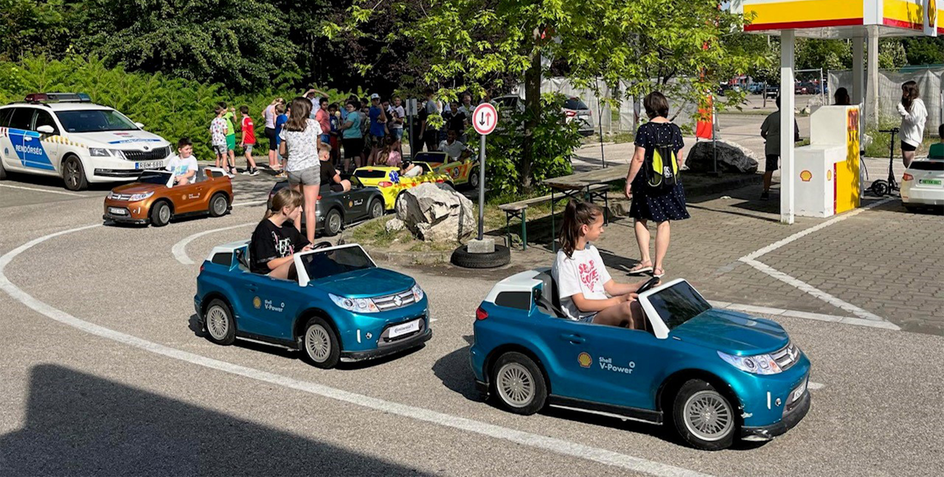 A parkban a biztonságos közlekedés szabályairól tanulhattak a gyerekek, majd az elméleti tudásukat Korompai Gábor, a park tulajdonosa jóvoltából gyakorlatban is hasznosíthatták. A diákok elektromos kisautókkal, illetve rollerekkel, valamint gyalogosan gyakorolhatták a közlekedési szabályok betartását. Füzék Zsófia r. hadnagy ezután nyár veszélyeiről, a 112 segélyhívószám szabályairól és fontosságáról beszélgetett a résztvevőkkel.