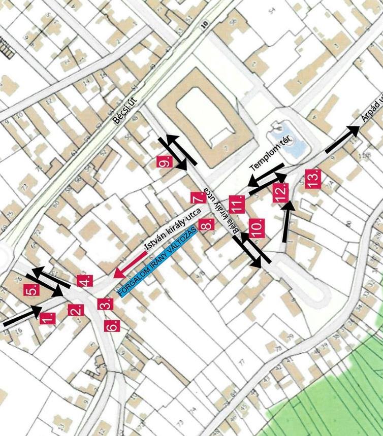 A város forgalomtechnikusa által tett javaslat szerint az István király utca forgalomi rendjét úgy célszerű megváltoztatni, hogy a Béla Király utca és Kálvária utca közötti szakaszon, a közlekedés jelenlegi irányát megfordítják.