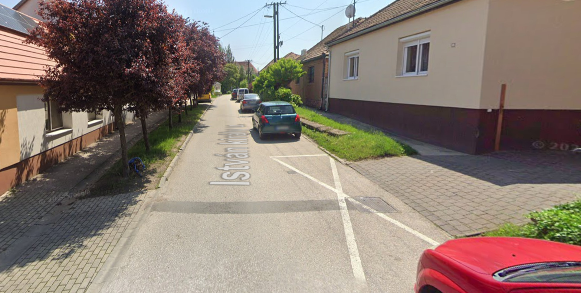 8. István király utca, Béla király utca kereszteződésénél menetirány szerinti baloldalra –“P” várakozóhely tábla, párhuzamosan az úttal kiegészítő táblával.