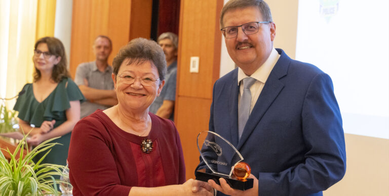 Üstökös Vándorszoborral jutalmazta a Komárom-Esztergom Vármegyei Kábítószerügyi Egyeztető Fórumot (KEF) példamutató szakmai munkájáért Müller Cecília országos tisztifőorvos Budapesten.