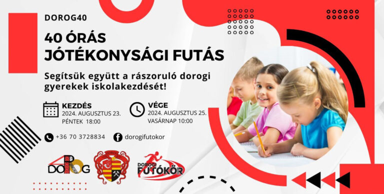 Augusztus 23. és 25. között a Dorog40 programsorozat részeként 40 Órás Jótékonysági Futást szervez a Dorogi Futókör, amely során a dorogi általános iskolák rászoruló tanulóinak könnyítik meg az iskolakezdését.