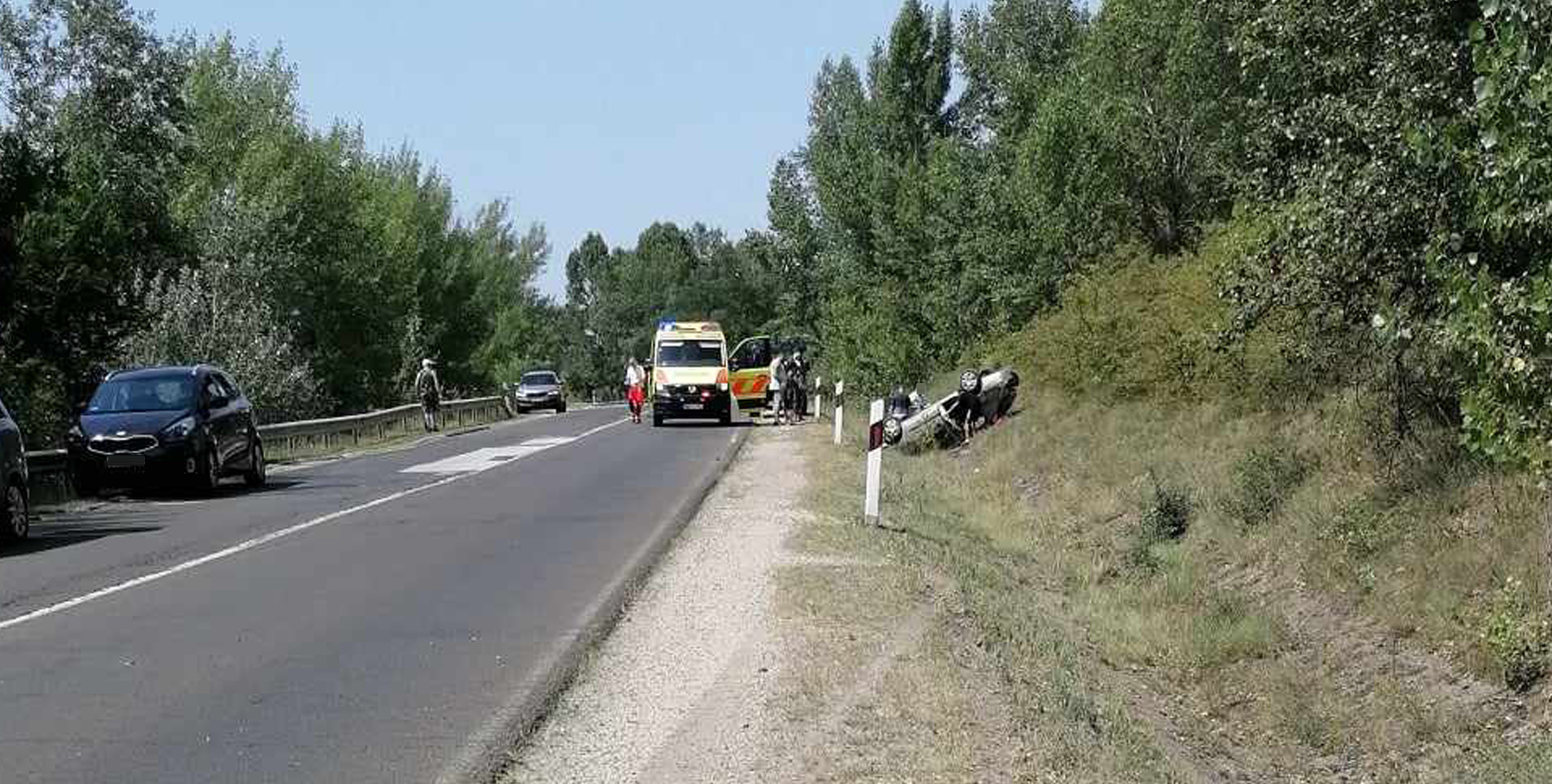 Július 14-én, vasárnap délután árokba hajtott, felborult és a tetején állt meg egy személygépkocsi a 117-es út 4-5. kilométerszelvény között.