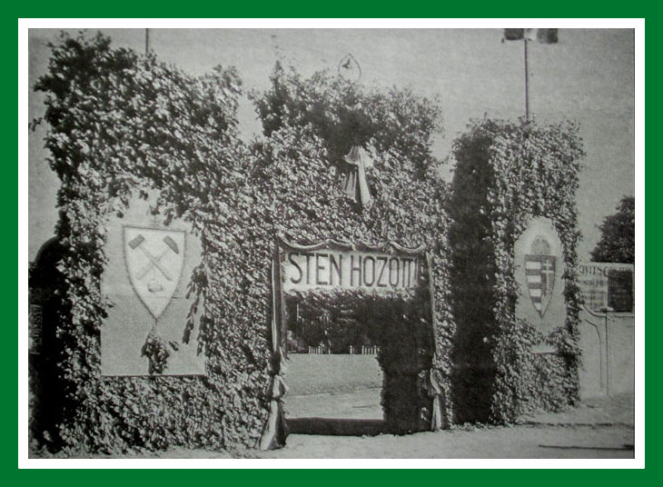 Mint minden jelentős esemény idején, ilyen pompában várta a résztvevőket a dorogi sporttelep. A képen a főbejárat, a Déli kapu köszönti vendégeit és az érdeklődőket.