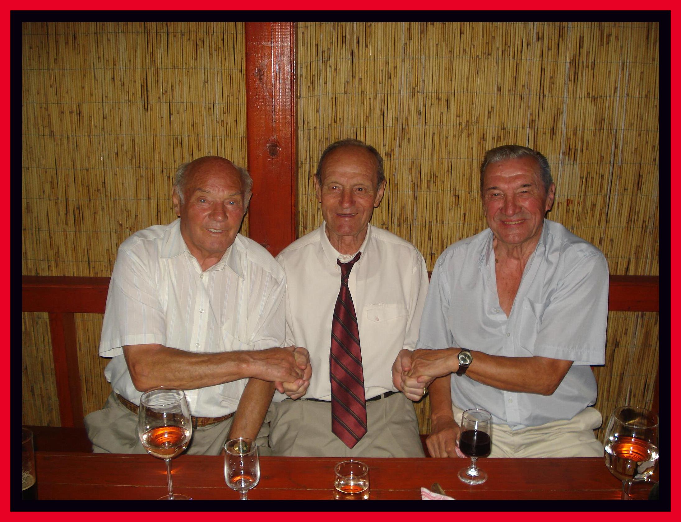 Három dorogi legenda, egyben jó barát együtt. Balról Buzánszky Jenő, Monostori Tivadar és Bakonyi István (forrás: Monostori család albumából).