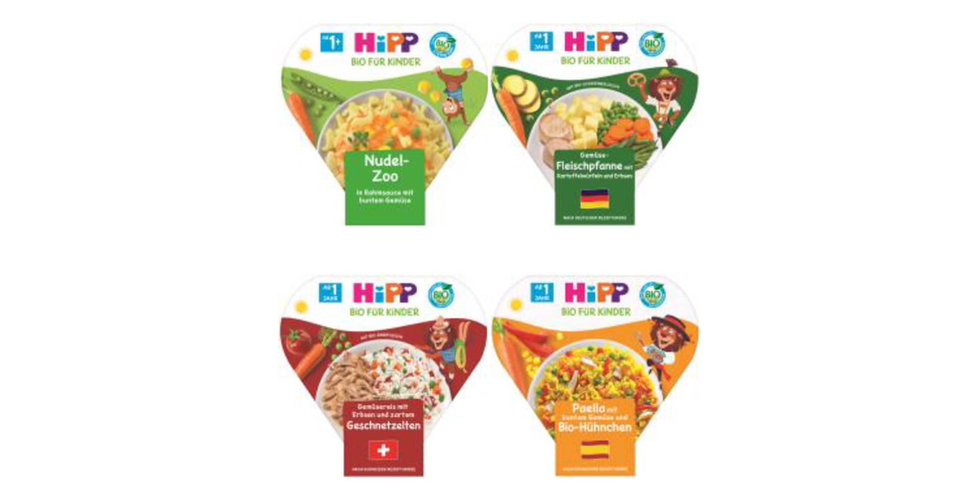 Termék neve: HIPP Bio tál 1 év Állatfigurás tészta zöldségekkel tejszínes szószban, HiPP Bio tál 1+ év Zöldséges-húsos, burgonyakockákkal és borsóval, HiPP Bio tál 1-3 év Zöldséges rizs+marha, HiPP Bio Egytálétel 1+ év Paella zöldségekkel és csirkével, 250 g.