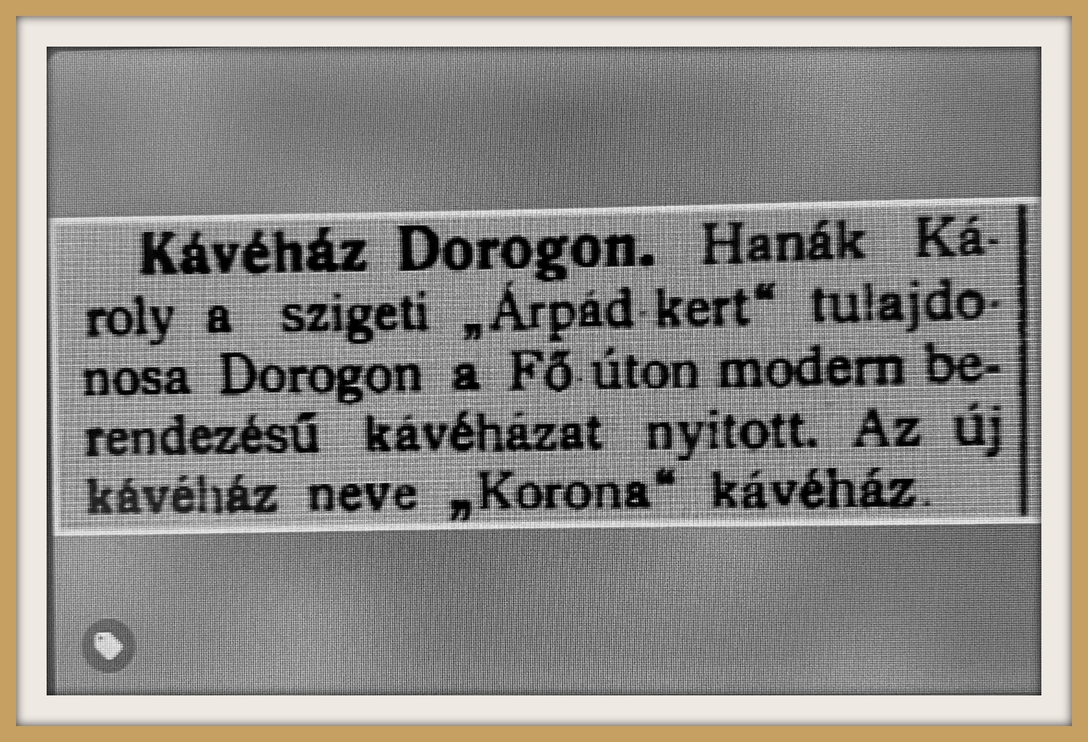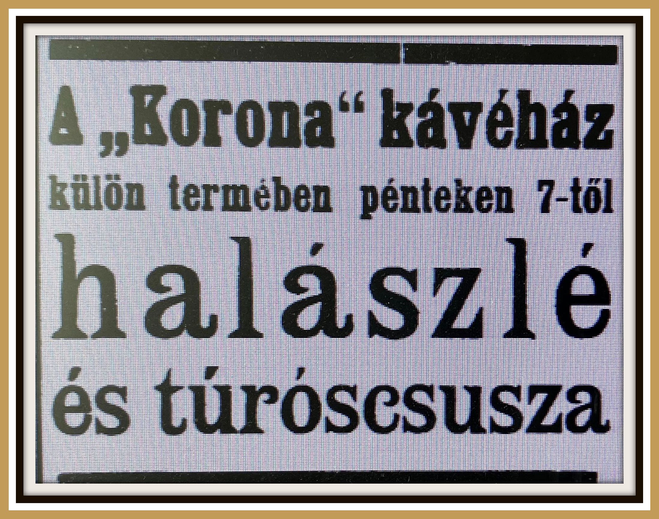 Megjegyzés: A gazdag Geiszler-gyűjteményben található korabeli felvétel a Korona Kávéházról, azonban a hagyaték bedobozolva, rendszerezésre vár. Ezért jelenleg nem kutatható, így sajnos nem áll módomban képmellékletben szerepeltetni.
