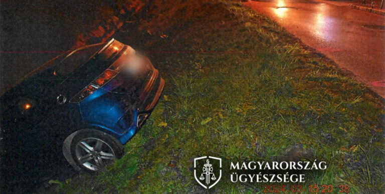 A nő a személyképkocsival ittassága folytán jobb oldalon letért az úttestről, majd az útpadkának ütközve ezt észlelte és úgy korrigált, hogy a jármű elejét hirtelen balra rántva a főutat keresztezve a járművel az úttest bal oldalán kiépített 4 m mély árokba hajtott. A jármű vezetésekor a sofőr közepes fokban volt ittas állapotban.