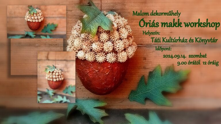 Szeptember 14-én, szombaton 9 órától óriás makkot készíthetnek a résztvevők a kézműves workshop keretében a Táti Kultúrházban.