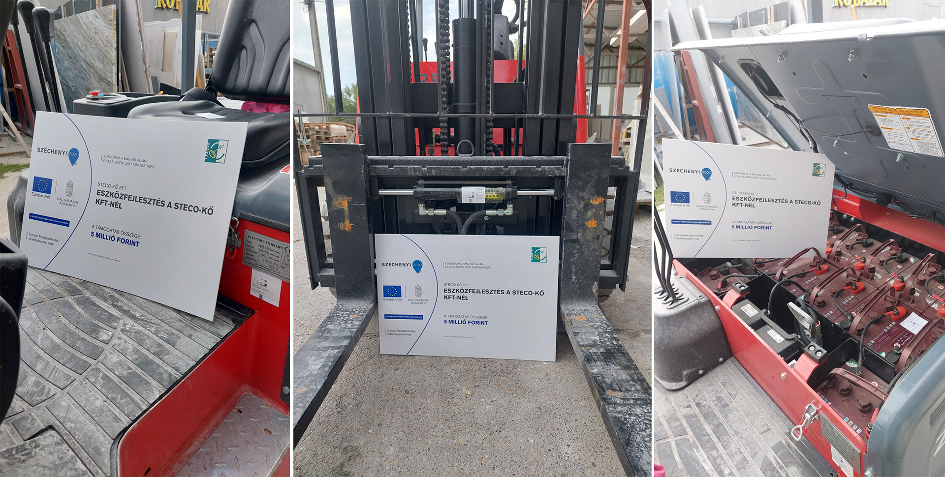 A Steco-Kő Kft. a LEADER program (VP6-19.2.1.-2-7-21) keretében vállalkozásának fejlesztése, szolgáltatása színvonalának növelése érdekében új eszköz (elektromos targonca) beszerzését valósította meg.