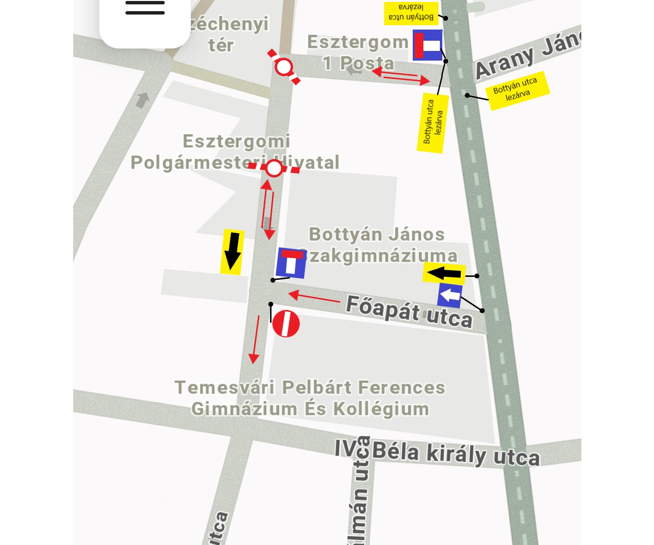 Október 1-jén Esztergomban a Bottyán János utca, Arany János utca és a Főapát utca közötti szakaszt zárják le ideiglenesen.