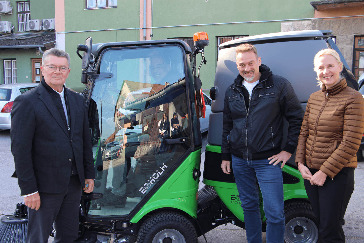 Dr. Tittmann János polgármesternek Magyar Ákos, az alapítvány elnöke és Róthné Csipke Zsuzsanna, a Sarpi-Dorog Kft. humánerőforrás vezetője adta át október 18-án a City Ranger 2260 típusú kommunális gépet.