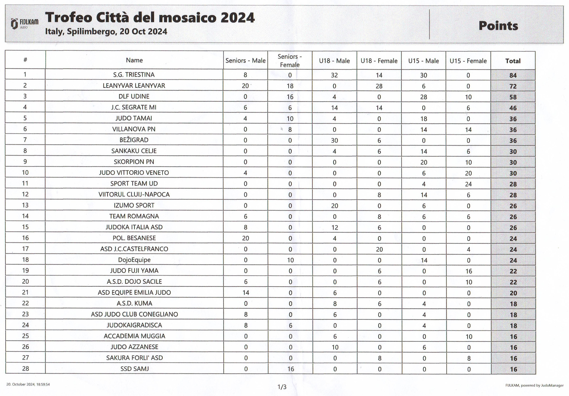 - Női csapat összesítés: Bushido JC és Leányvári SE 1.hely. Díjazás: Díszes serleg.