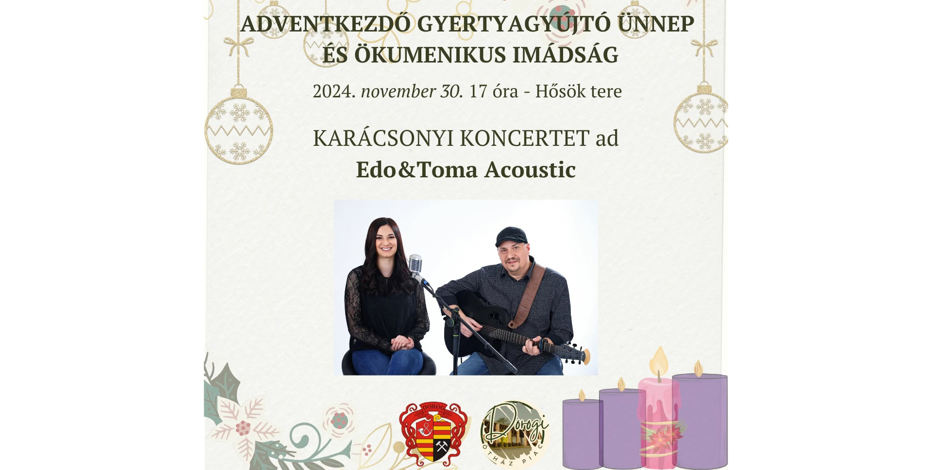 Szeretettel várnak mindenkit az Adventkezdő gyertyagyújtó ünnepre és ökumenikus imádságra, melyet 2024. november 30-án, szombaton 17 órakor Dorogon, a Hősök terén tartanak meg.
