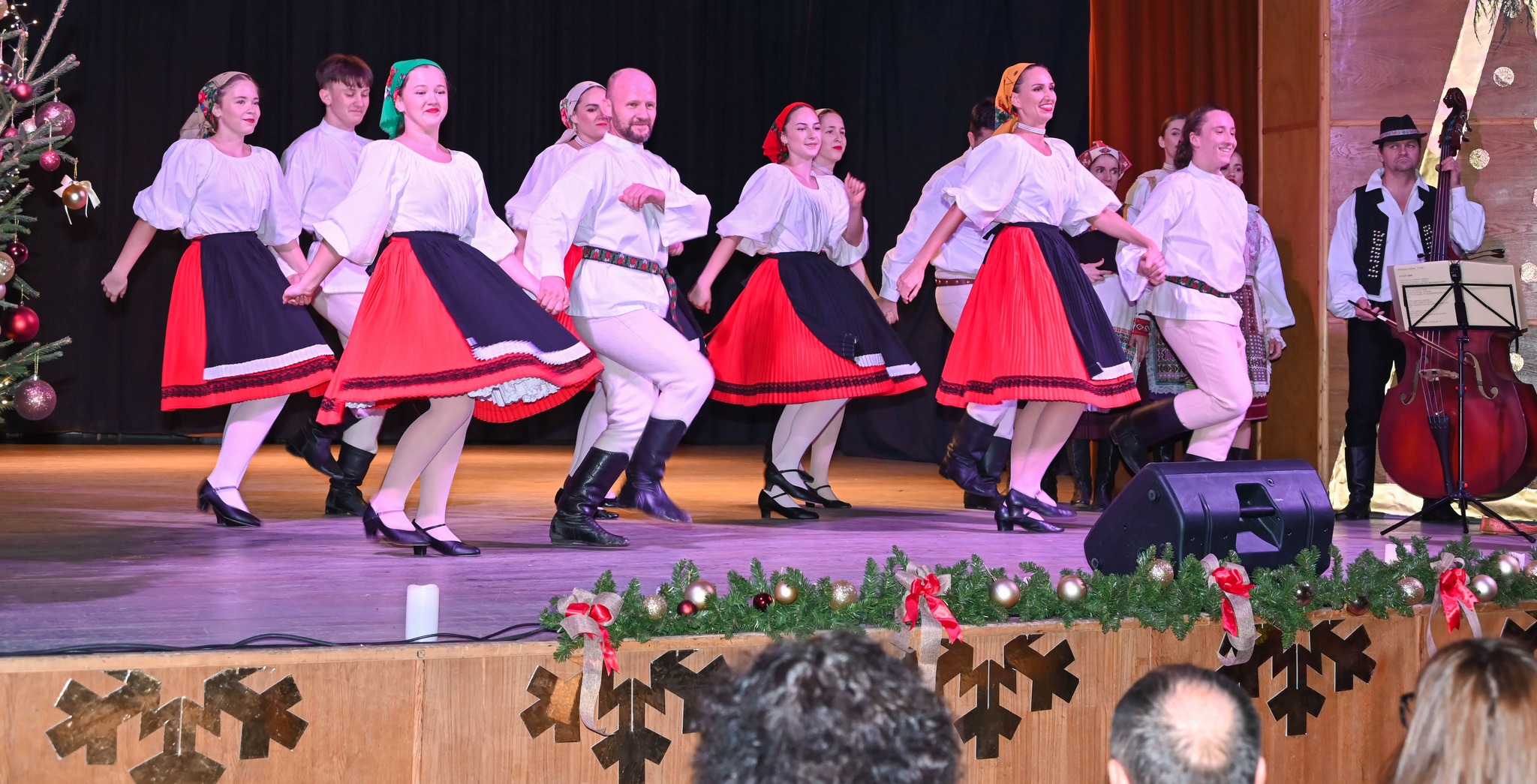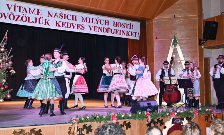 Az észak-komáromi Slovenskí rebeli folklórcsoport valódi ünnepi hangulatot teremtett a színpadra. A humort sem nélkülöző produkciójukban Szlovákia különböző régióiból származó táncokat mutattak be olyan szokásokkal gazdagítva, amelyeket az adventi időszakban is betartottak.