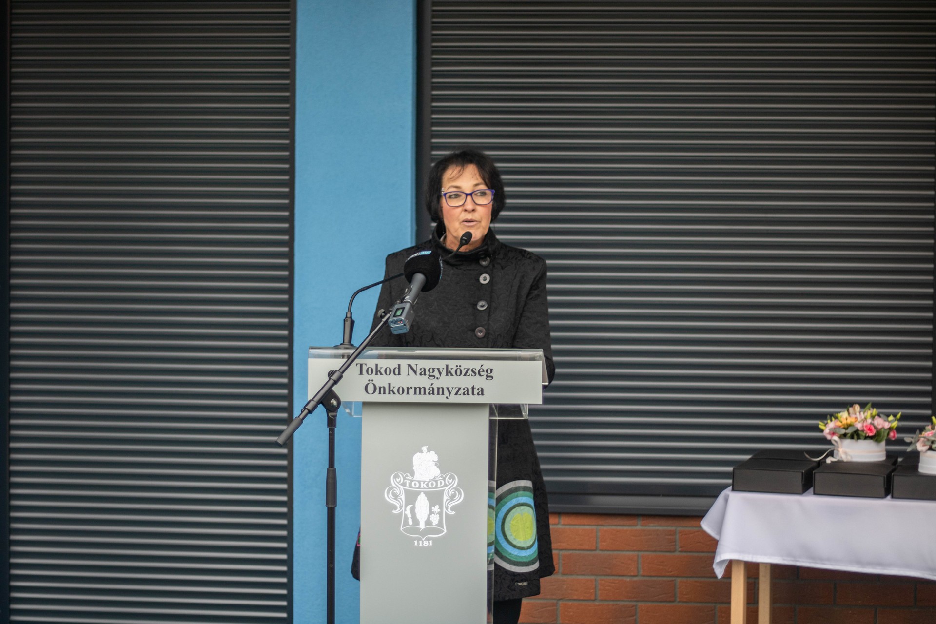 Harmadikként Aknainé Szóda Krisztina, az intézmény főigazgatója járult a mikrofonokhoz, aki elmondta, hogy különös jelentőséggel bír számára ez a nap, hiszen a vendégek között köszöntheti édesanyját, aki 28 évvel ezelőtt, 1986-ban Tokod faluban adhatta át ennek a bölcsődének a székhelyintézményét, az óvodát. „Most, 2024-ben itt állhatok, abban a kivételes helyzetben vagyok, igaz, nem közvetlen utódjaként, de bővíthetem munkáját, és ugyanazzal az elkötelezettséggel adhatom át az óvodához tartozó korszerű és modern bölcsődét.” – jegyezte meg az intézményvezető asszony, majd kiemelte, hogy ez az új bölcsőde nem csak egy modern épület, hanem egy olyan hely, amely a legkisebbek fejlődését, a családok támogatását és a közösség jövőjét szolgálja.”