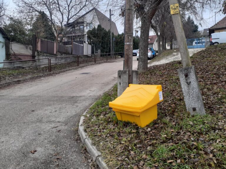 Dorog Város Önkormányzata tájékoztatja a helyieket, hogy a Panoráma és az Attila utcák egyes pontjaira kültéri útszórósó tárolókat helyeztek ki, azzal a céllal, hogy a lakosság is el tudja végezni az utak csúszásmentesítését a kritikus pontokon, amennyiben szükséges.