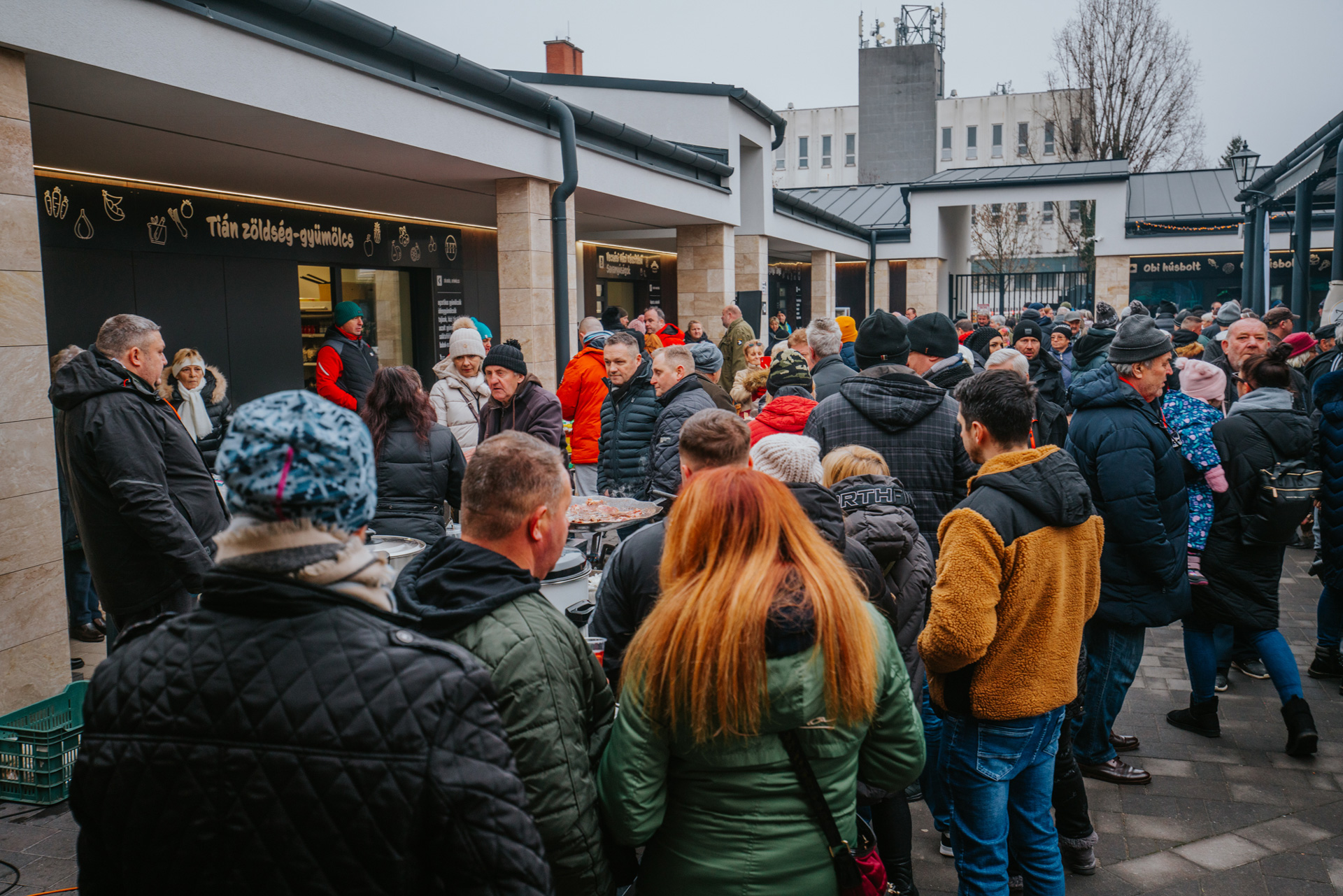 A késői reggeli – korai ebéd elfogyasztása után megnéztük a bölléreket, ahol éppen Farkas Dénes esztergomi hentes fente a késeket. – Itt lehet vásárolni elvitelre hurkát és kolbászt? – kérdeztem, majd a böllérek elmondták, hogy ezeket sütésre készítik elő, de az Obi-Hús üzleténél már ott vannak a frissen készített sertésételek. Habár nagyon hosszú volt a sor, azért beálltunk a hentesüzlethez, ahol türelmes várakozás után megvásárolhattuk otthonra a véres-május hurkát és a sütnivaló kolbászt. Mielőtt haza indultunk volna, megnéztük milyen levesek rotyognak a Felvidéki Csemegénél, majd a Lipóti Pékségben elfogyasztottunk egy jó erős feketét.