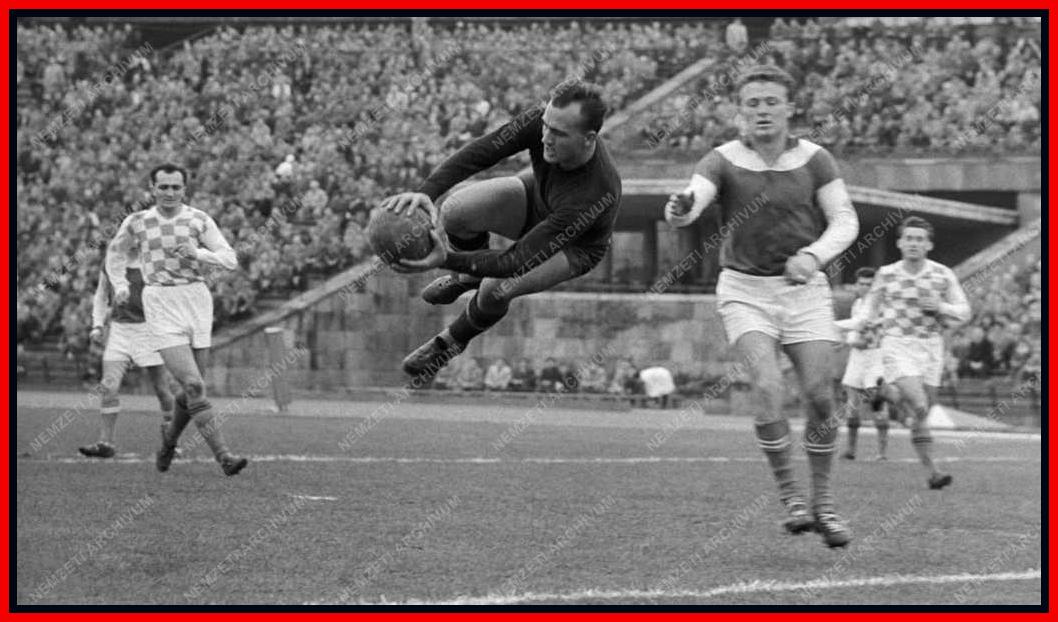 Ilku repülve hárít az 1960 őszén játszott meccsükön a Népstadionban (forrás: Nemzeti Archívum online photo bank).