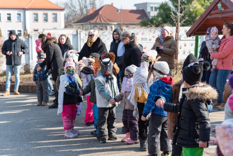 Gyönyörű napsütéses időben, a mohácsi busójárás hagyományát dramatikus keretbe ágyazott játékkal felidézve, vidám hangulatban űzte, kergette a telet az óvoda apraja és nagyja.