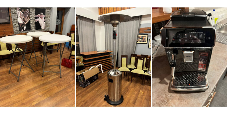 A projekt választható önállóan támogatható tevékenységei közül az eszközbeszerzés keretében a kapcsolódó fejlesztéseket valósították meg: hangosító berendezés RCF 1500W, Italhűtő COLD-380, Hűtőszekrény, Kávéfőző, Mosogatógép, Fűtőgomba, Könyöklő beszerzése.