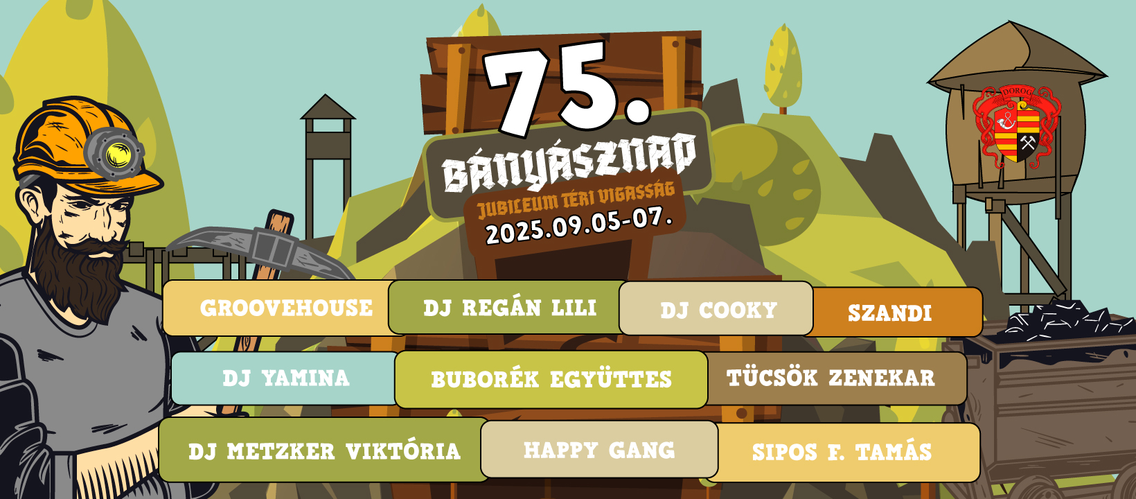 Szeptember 5. és 7. között 75. alkalommal rendezik meg a Dorogi Bányásznapokat a Jubileum téren. Idén is ismert lemezlovasokkal, koncertekkel, családi és gyermek programokkal, esténként pedig utcabállal várnak mindenkit!