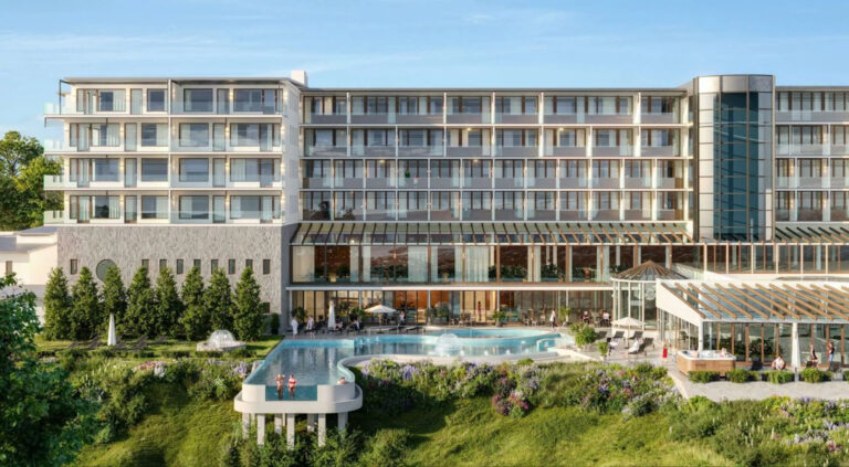 Az Európában egyedülálló panorámájú, a hegyoldalból kinyúló új kültéri látványmedencével tér vissza a turisztikai piacra a tavaly leégett, legendás visegrádi szálláshely. A szálloda tulajdonosai ugyanis úgy döntöttek, hogy a tűzkár elhárítását, tehát az építés időszakát kihasználják a korábban is tervezett fejlesztések megvalósítására. Így idén áprilisban nemcsak újjászületve, hanem megduplázott külső és kibővített belső wellnesskapacitással nyitnak meg újra.