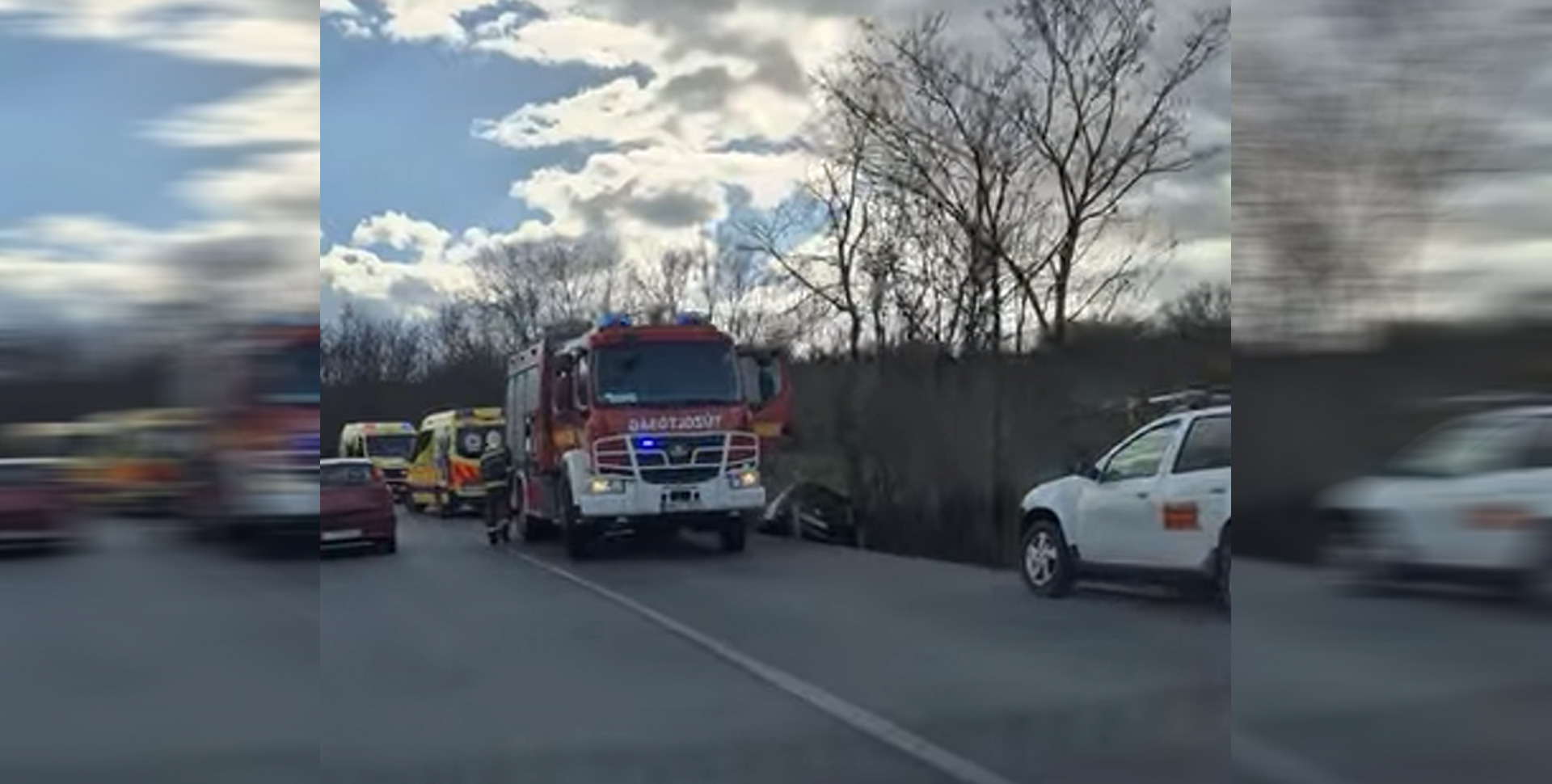 Racsné Galambos Gréta rendőr őrnagy, a Komárom-Esztergom Vármegyei Rendőr-főkapitányság szóvivője elmondta, hogy az esetről 15 óra 3 perckor érkezett a bejelentés. Hozzátette, hogy elsődleges információk szerint a sofőr rosszul lett vezetés közben, ezért tért le az úttestről.